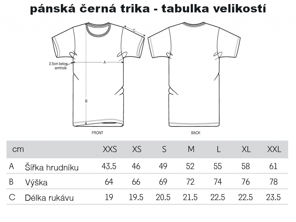 Jsme schopni sehnat černá trika až do velikosti 5 XL.